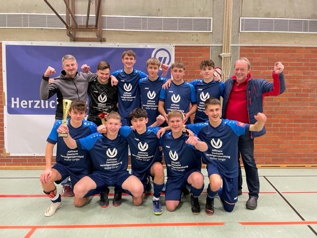 Im Endspiel wurde der VfB Hallbergmoos beim Signal-Iduna-Cup in Moosburg am 22.01.2023 mit 3:2 besiegt. In der Gruppenphase hatten unsere A-Junioren noch gegen den VfB Hallbergmoos verloren und wurden damit „nur“ zweiter in Gruppe A. Im Halbfinale ging es dann gegen den Sieger der Gruppe B. Der SV Landshut-Münchnerau wurde klar mit 3 : 1 besiegt, so dass unsere Junioren das Endspiel erreichten. Gegner war wieder der VfB Hallbergmoos, der dieses mal aber besiegt wurde. Unsere A-Junioren gewannen damit den Signal-Iduna-Cup 2023. – Gratulation –