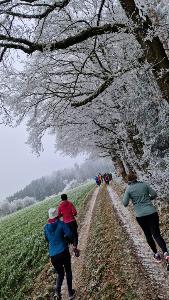 voller Energie zu starten. Die Strecke führt durch malerische Umgebung, vom Rauhreif umhüllt, von Puttenhausen aus in Richtung Oberbayern durch